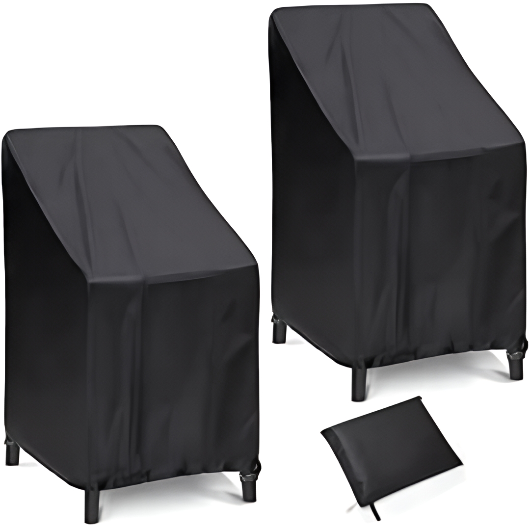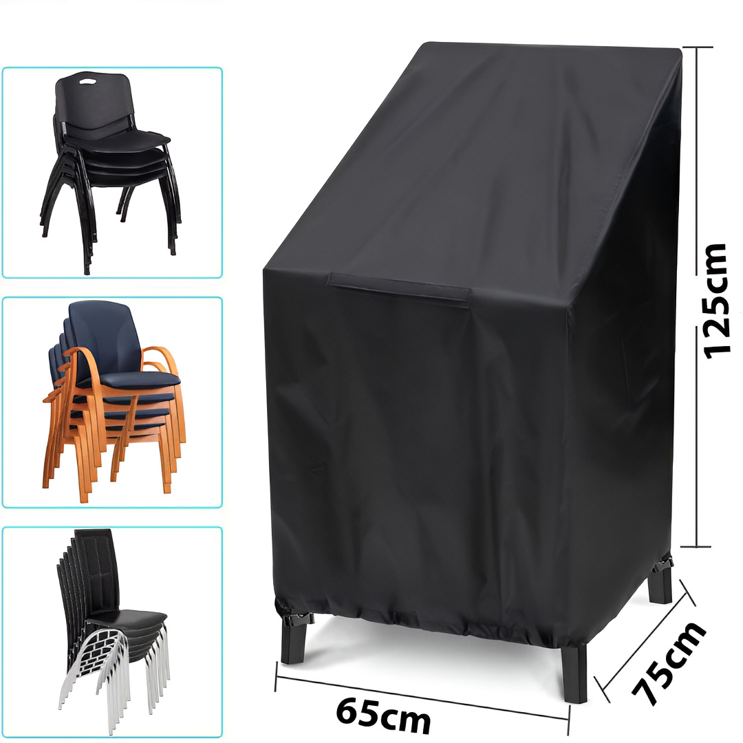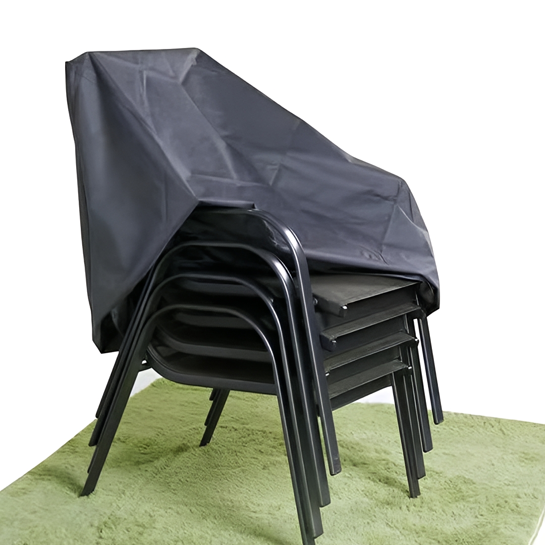 Heavy-Duty Outdoor Chair Protection: Durable protective cover designed to shield stacked patio or garden chairs from dust, dirt, rain, sun exposure, and harsh outdoor weather conditions.