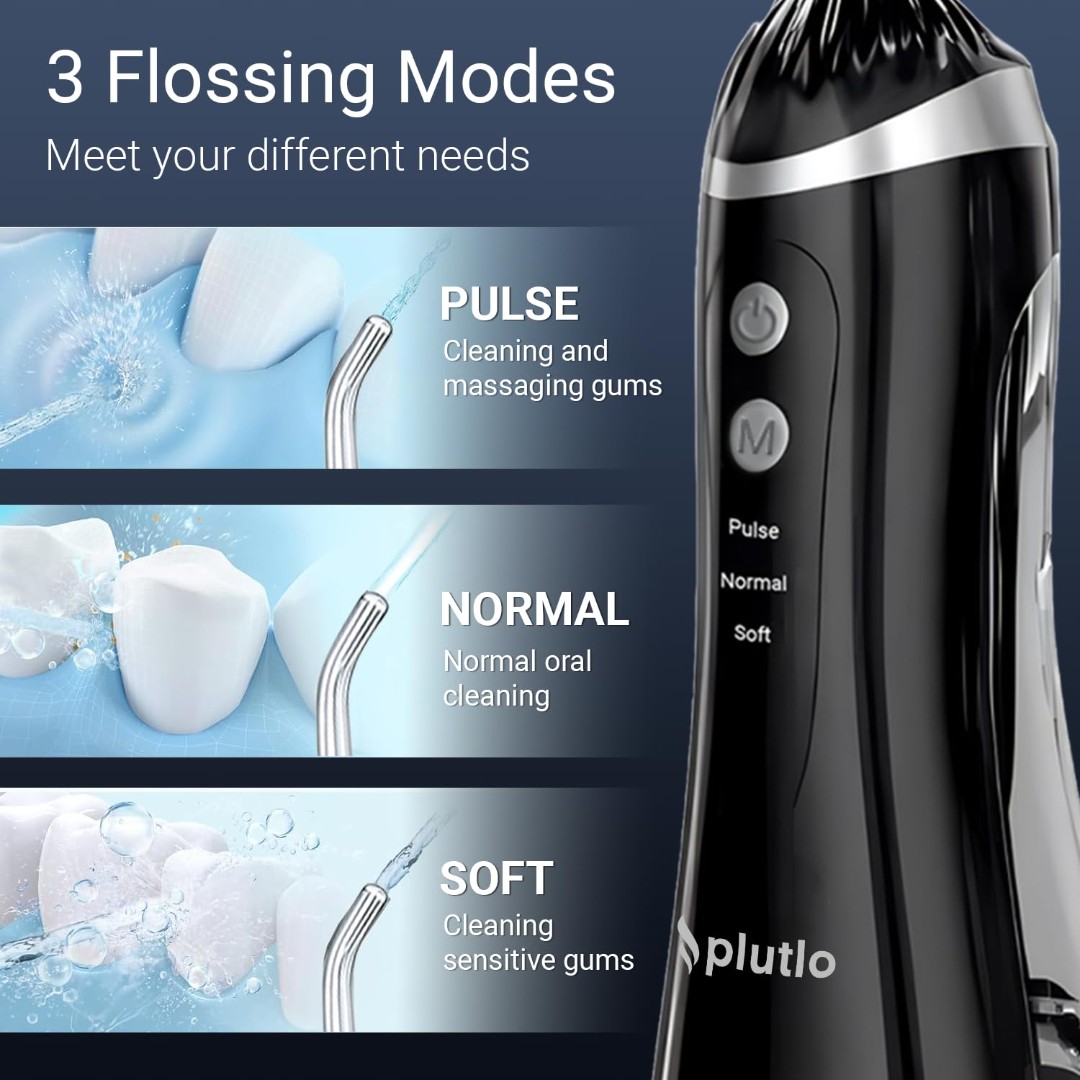 Powerful Oral Irrigator Cleaning System: Advanced water flosser designed to remove food particles, plaque, and bacteria from between teeth and along the gumline for a deeper and more effective clean.