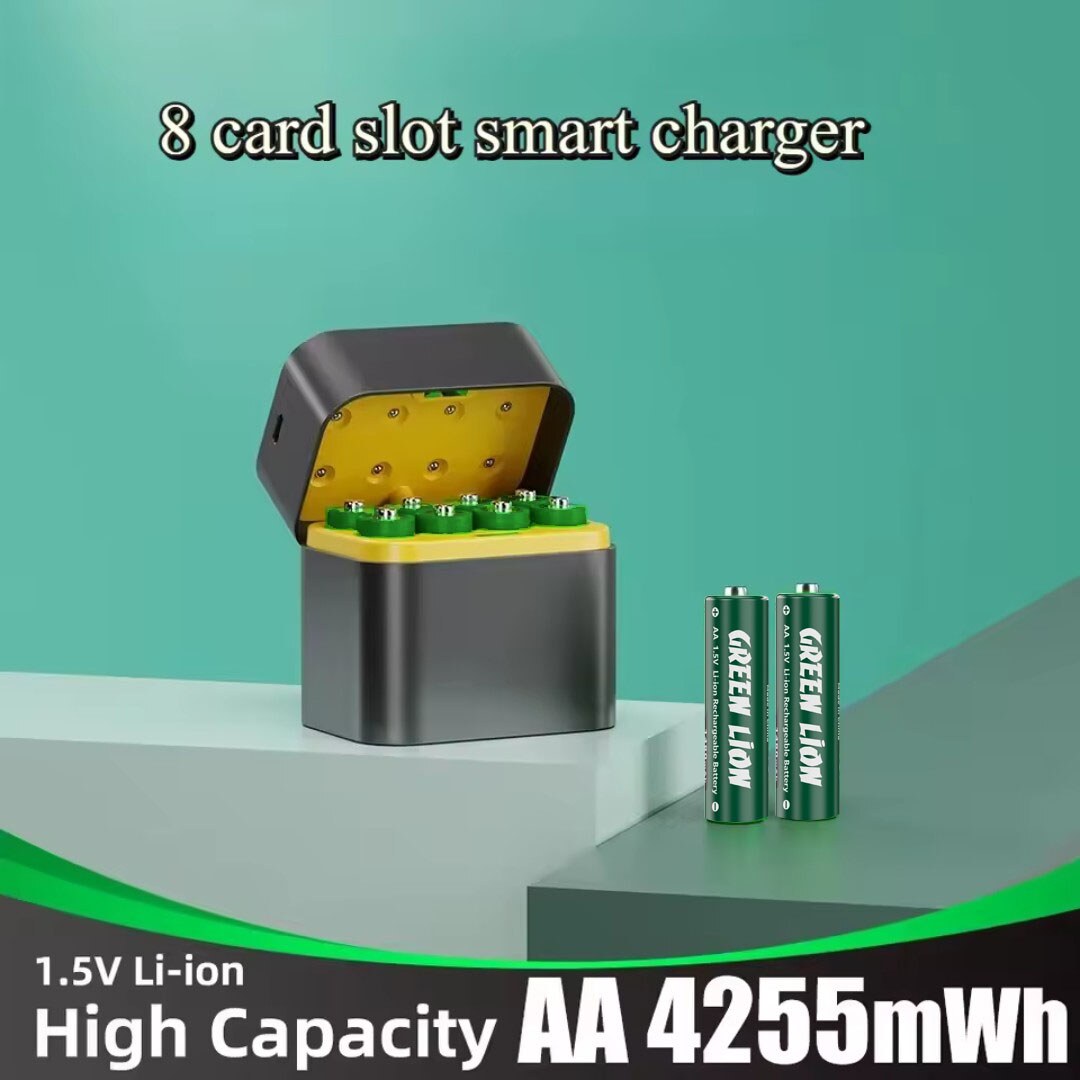 8-Slot Smart Charging System: Designed with 8 individual charging slots, allowing you to charge multiple AA batteries simultaneously with efficient and organized power management.