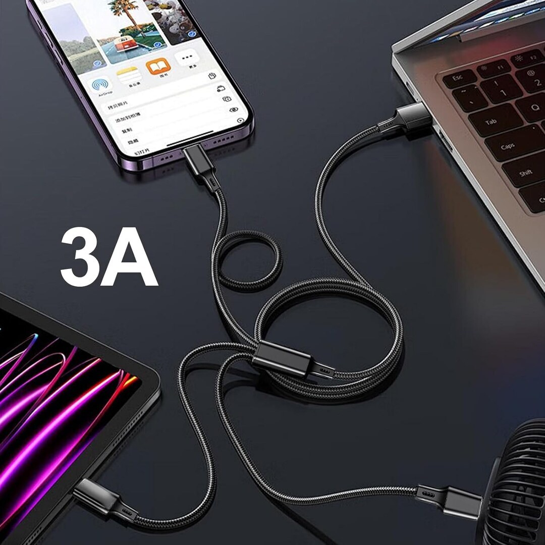 Multi-Device Charging Design: 3-in-1 cable allows simultaneous charging of multiple devices, making it perfect for phones, tablets, and other gadgets with different ports.