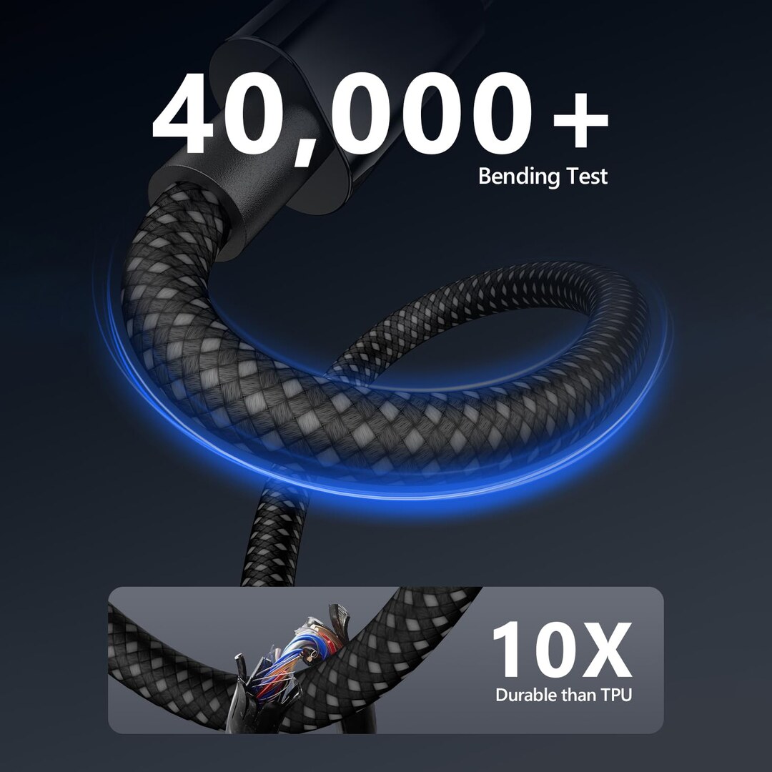 Durable Braided Construction: High-strength braided cable enhances durability, prevents tangling, and withstands daily wear and bending.