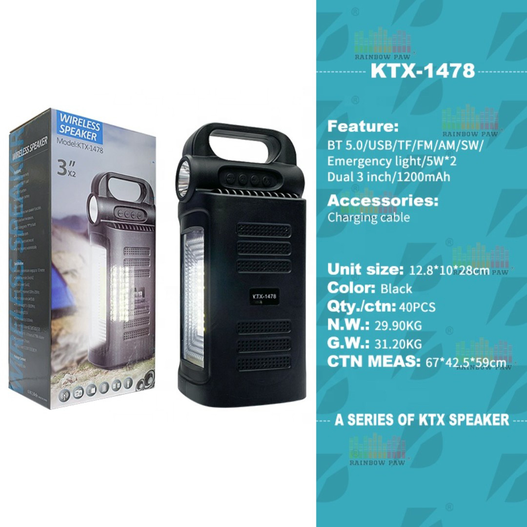 High-Power Portable Design: Compact and durable wireless speaker with an integrated handle, making it easy to carry for outdoor activities, camping, and emergency situations.