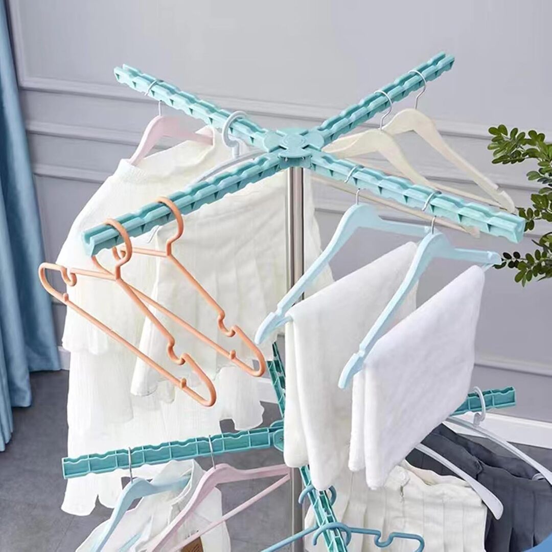 High-Capacity Drying Design: Features multiple rotating arms with grooved slots, allowing you to hang shirts, towels, socks, and hangers efficiently without slipping.