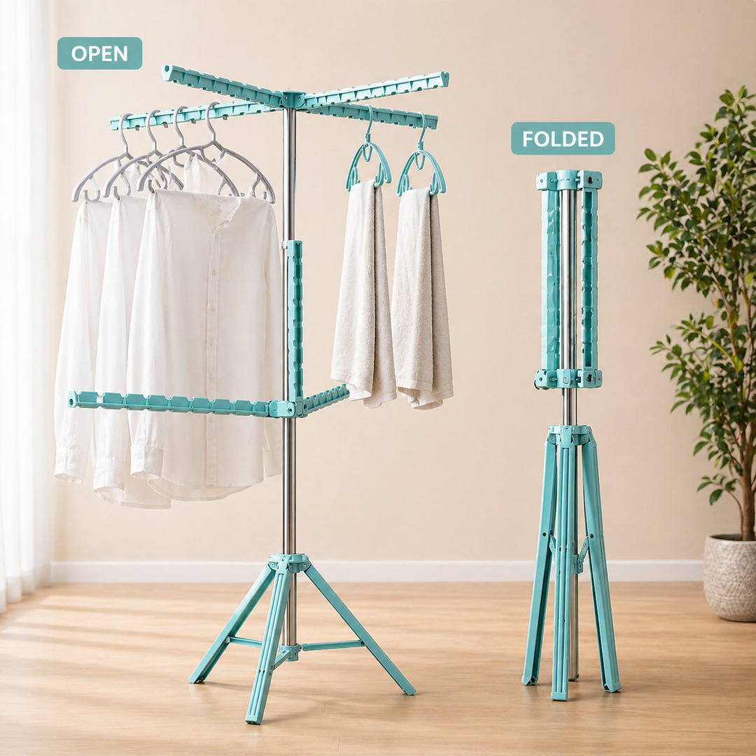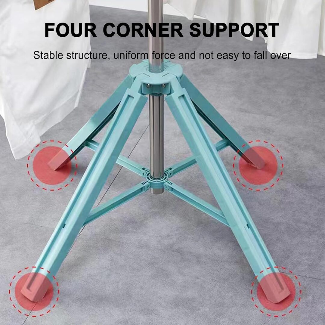 Stable Tripod Base: Equipped with a strong triangular base that provides excellent stability and balance, even when fully loaded with clothes.
