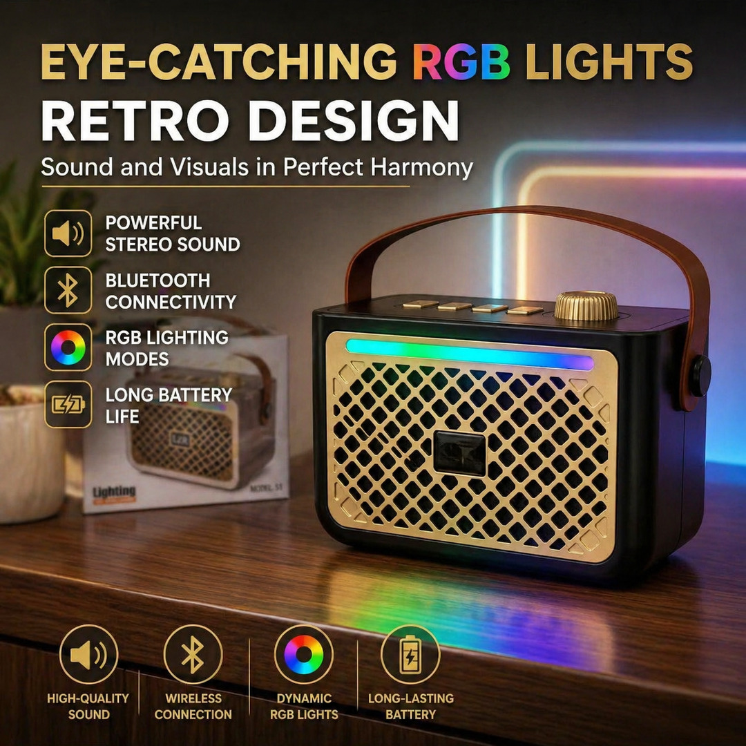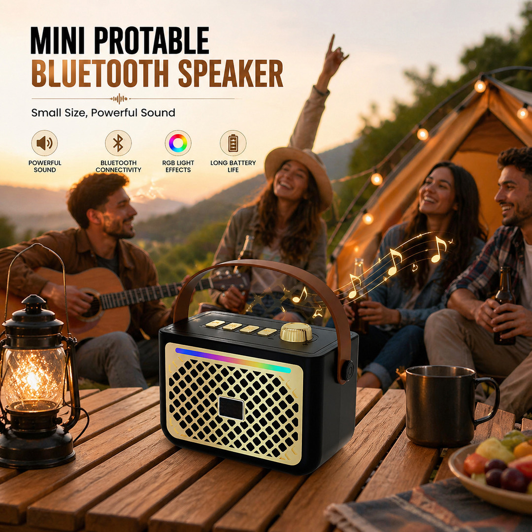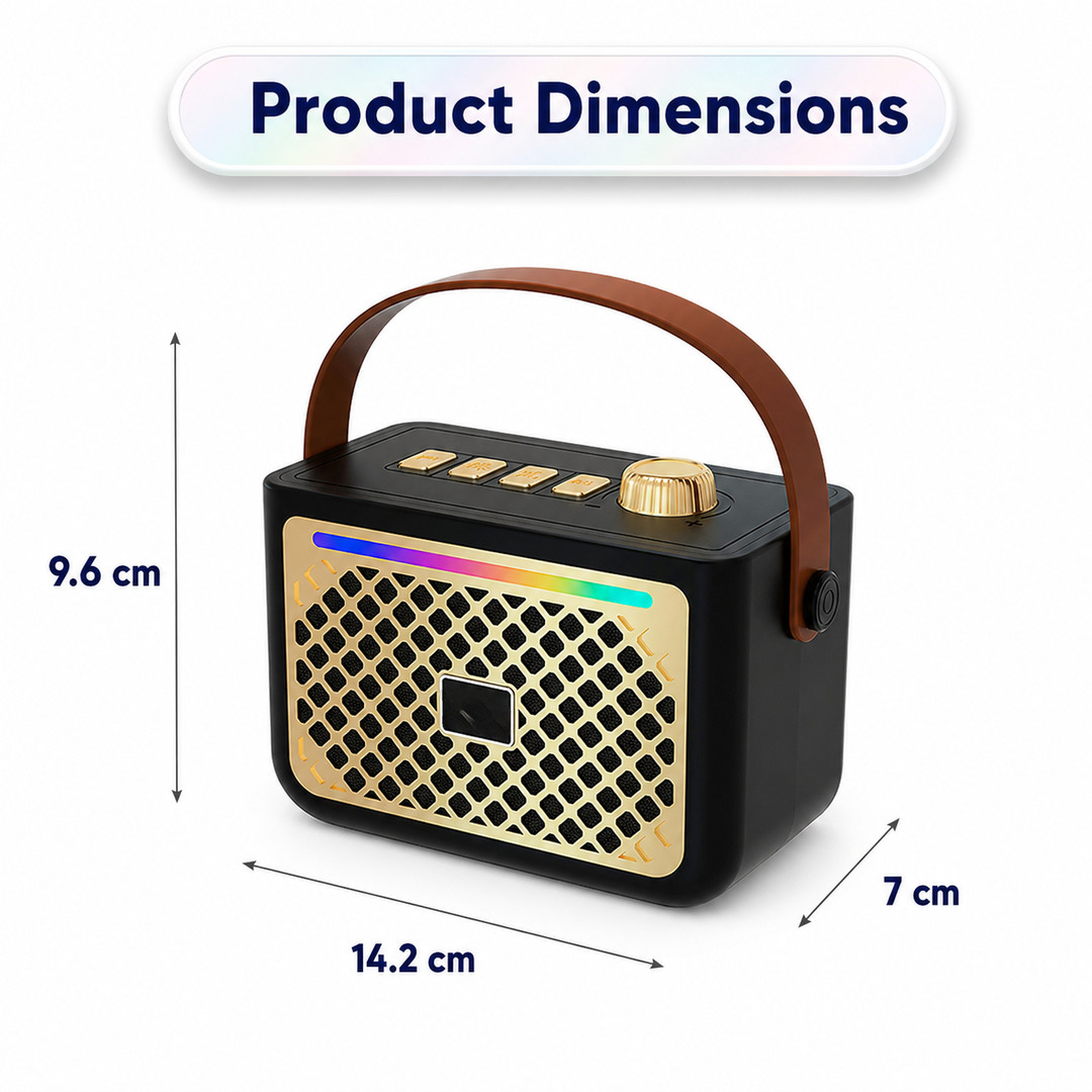 Portable Compact Design: Lightweight and mini-sized speaker with a built-in handle, making it easy to carry anywhere for music on the go.